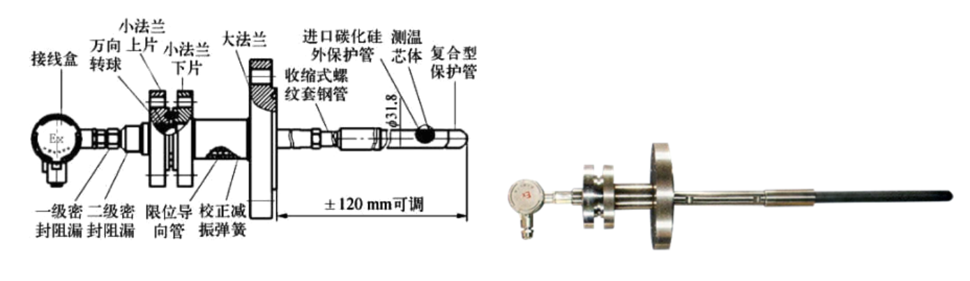 针对这些要求,气化炉热电偶通过选用特殊的材料和结构设计,满足了气化炉工况对温度传感器的苛刻要求,是一种可调防振、耐冲刷、抗氧化、多级阻漏的气化炉专用热电偶。